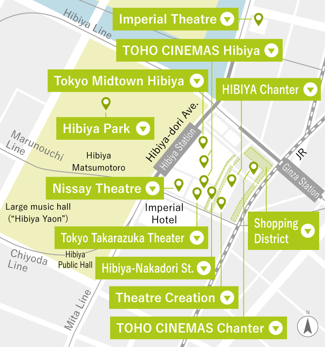 Hibiya is the home of various historic theaters where you can experience the lively excitement of plays, from timeless masterpieces to the latest works.
