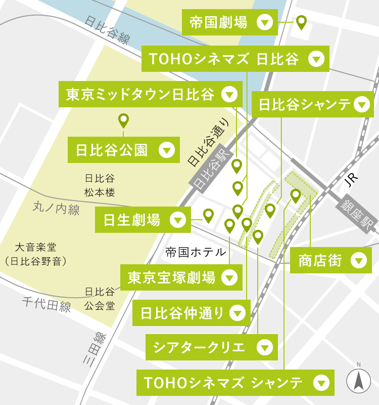 日比谷仲通り周辺・東京ミッドタウン日比谷、日比谷シャンテ 他
